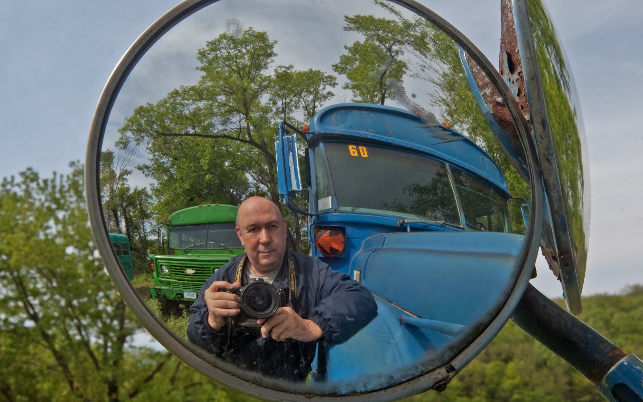 At Camp Hantesa also on the Lower Ledges Road is a grouping of Crayola colored school buses, they use in the summer to haul campers around to different parts of the park. Their contrasting colors made for interesting images, and when I saw myself and the buses in a large parabolic mirror....I could not pass up the chance for a self portrait as I liked how it showed the buses! Also on the camp grounds is this very colorful and distinctive totem pole about 30 feet tall. I am sure it contains lots of tales and legends.